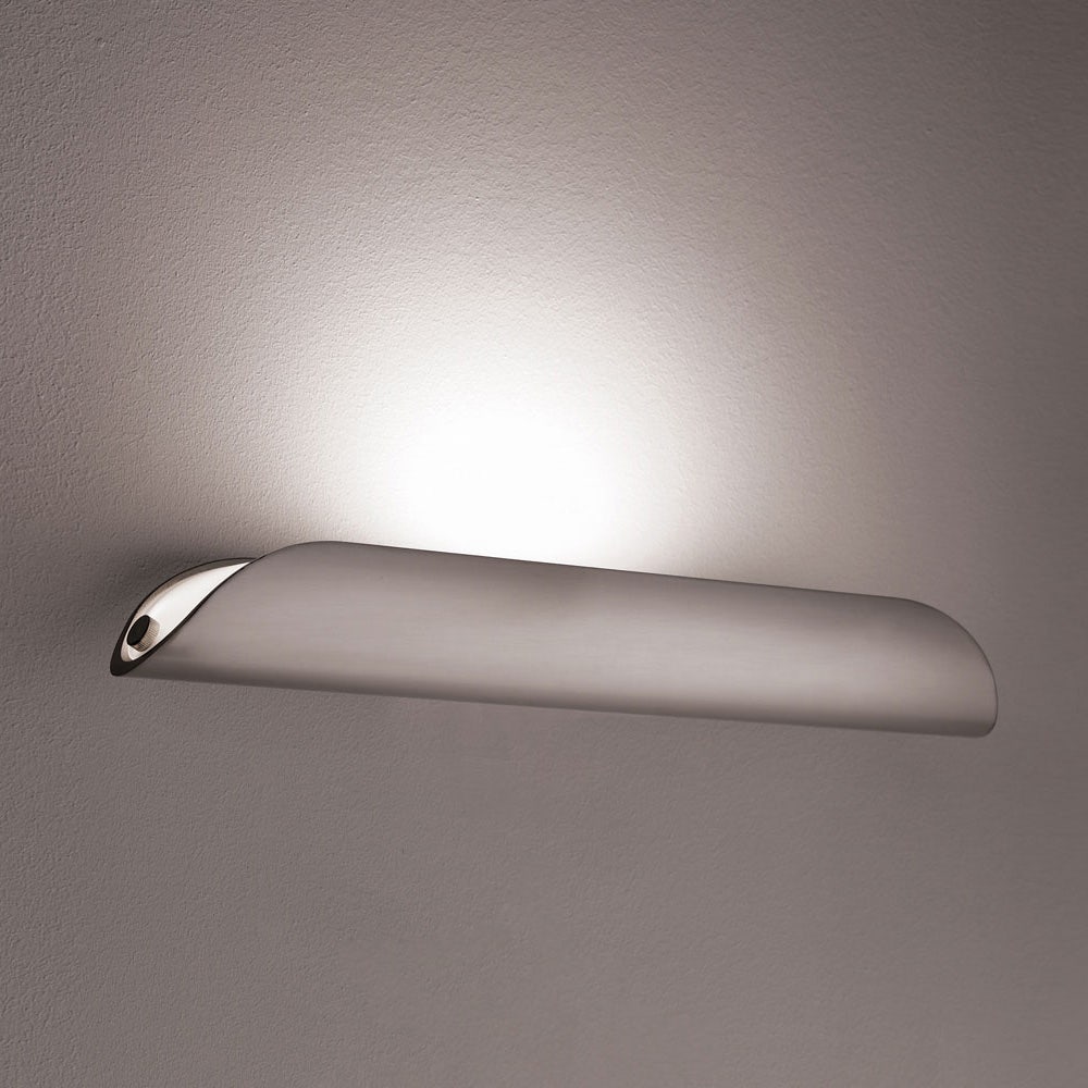A collection of lamp for wall in die-casted aluminum. The diffuser is shaped in the style of a ‘roof-tile’ traditionally to illuminate worktops, mirrors or painting.