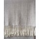 Premium baby alpaca, a finer, softer, more luxurious fiber. Colors are made with a mix of two tones, ecru in the weft showing in the delicate fringes. It’s very lightweight and super soft.