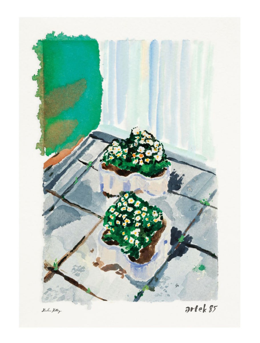 Artek commemorates its 85th anniversary in 2020 with this poster by Finnish artist Karoliina Hellberg. The artist created a work on paper reflecting her personal interpretation of Artek: when visiting the private home of architects and Artek co-founders Alvar and Aino Aalto in Helsinki, she was particularly compelled by its exterior, the garden and the terrace, a space Alvar Aalto considered to be a room in its own right. Karoliina Hellberg’s original drawing is realised in water colour, ink and acrylic paint.