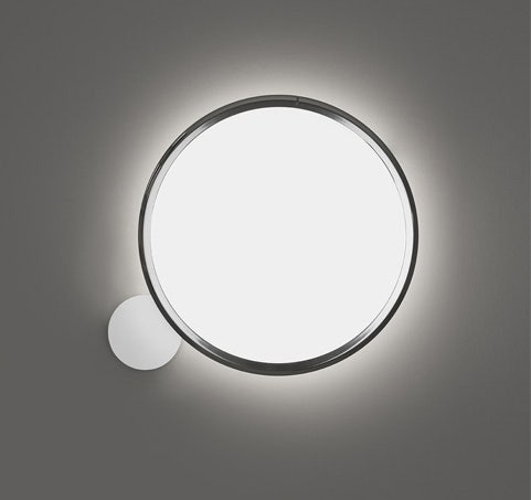 Discovery is an unprecedented development of a well-known optical principle, obtained through the technological know how and deep knowledge of light of Artemide, which are conveyed through the controlled interaction with matter and a focus on its yield and perceptive qualities. An ultra-light rounded aluminum rim hosts to a LED strip injecting light into a clear PMMA surface, processed for the purpose. It is a non-intrusive element that, utterly absent and immaterial, becomes perceptible when switched on, thanks to the light outlining its central emitting surface. Almost by magic, the inside changes from clear to full of light, absence turns into a perfect diffusing emitting surface. Direct and indirect emission produces an embracing and uniform light.