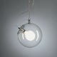 Polished chromed metal suspension rod, adjustable for different ceiling heights. Transparent blown glass diffuser. Diffused light emission.