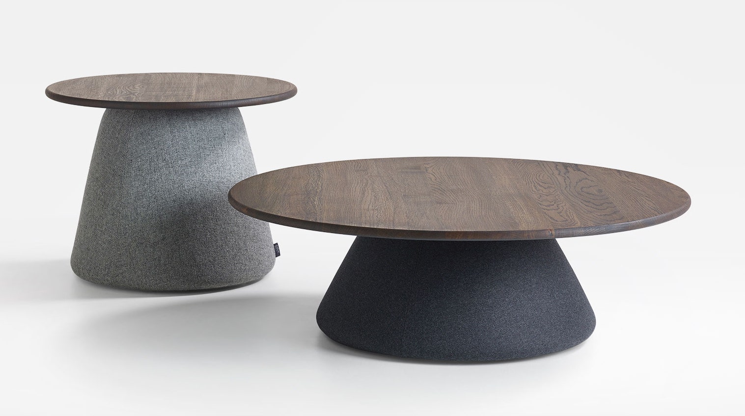 Terp table is a gentle landscape of upholstered tables and pouffes by designers Mike & Maaike. The little tables and pouffes add colour and fun to a house or office like no other. Friendly soft surfaces provide functionality and calm. The design is inspired by Dutch mounds.