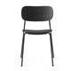 The chair is distinguished by a wide veneer back, whose proportions allow freedom of movement and provide maximum comfort. Comfort also led the design of the backrest, which is positioned and angled for exceptional support. The Co Chair’s slender yet robust powdercoated steel frame defines the intriguing geometric silhouette – and delivers high durability. Optional veneer armrests adding another aesthetic and functional dimension, serving both for added comfort and for suspending the chair off the floor for easy cleaning.