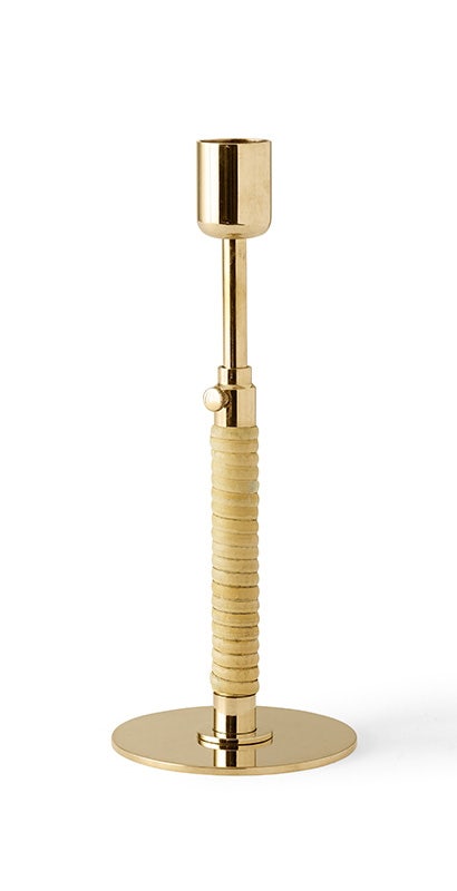 Discovering a simple mechanical detail used to extend the height of objects while working with a blacksmith, the Danish design studio Krøyer-Sætter-Lassen put the small yet significant detail to work as a key element of the new Duca candleholder. Challenging the typically static silhouette of the object, the screw function allows users to personalise the height of the candleholder by extending or shortening its length. Available in polished or bronzed brass entwined with rattan, Duca pairs contrasting natural materials to create a tactile addition to the collection of interior objects.