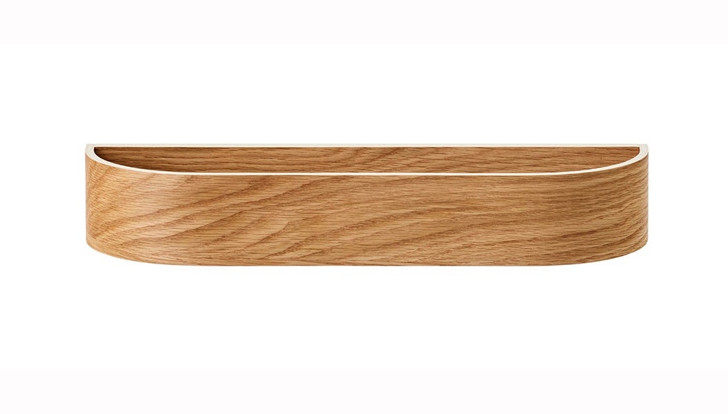 The Epoch Shelf is crafted in wood veneer and offered in two natural finishes: natural or dark stained oak. The multipurpose, space-saving design features on the one side a deep shelf for everyday clutter and on the other a shelf on which to place decorative objects. Multiples can be suspended in horizontal or vertical rows.