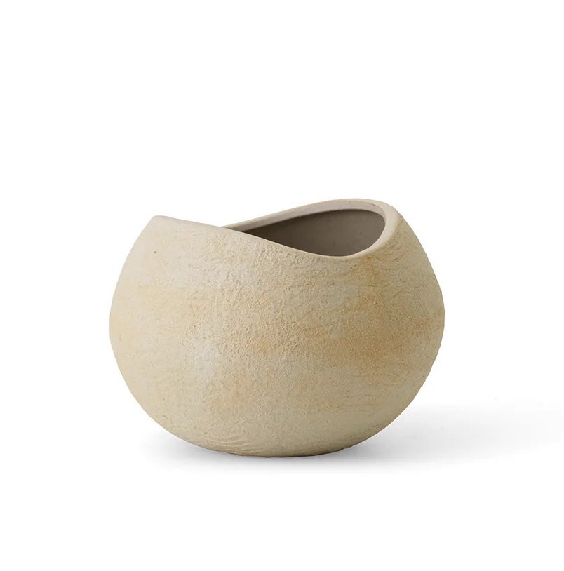 Characterized by their curves and irregular, furrowed surface, the Plantas Planters are made from matte ivory stoneware with a textured, natural appearance. Each piece is finished by hand and therefore entirely unique. Made for indoor use, the Plantas Planters can also be used outside when the guidelines included with purchase are followed.