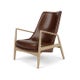 Arguably one of Ib Kofod-Larsen's best-known designs, The Seal is an elegant armchair typical of its time – and yet entirely timeless. The angled frame and armrests and leather upholstery put comfort at the fore, inviting lounging. And despite being made of heavy materials, it has a lightness to it; the shell appears to float inside the wooden frame. Named after the Swedish ski resort, The Seal is a fine example of Ib Kofod-Larsen's organic design and focus on detail and comfort.