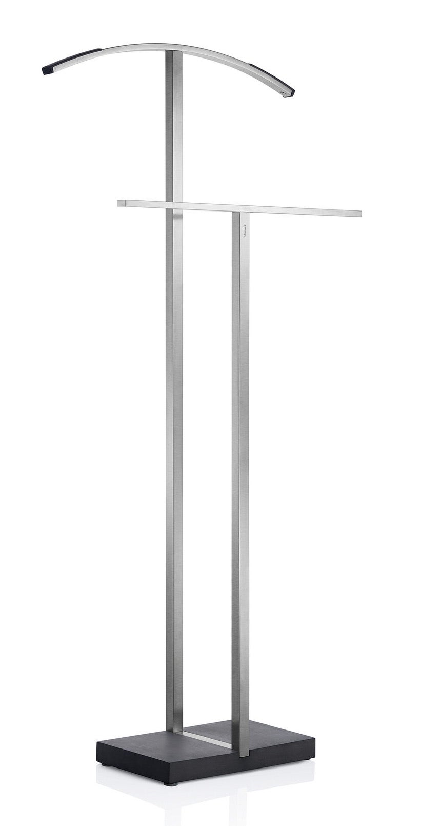 Blomus Menoto Wardrobe Valet combines a modern design with a traditional piece of furniture. The upper curved arch is ideal for a jacket or blazer. The lower rod is 9 1/2'' lower providing a place for slacks.