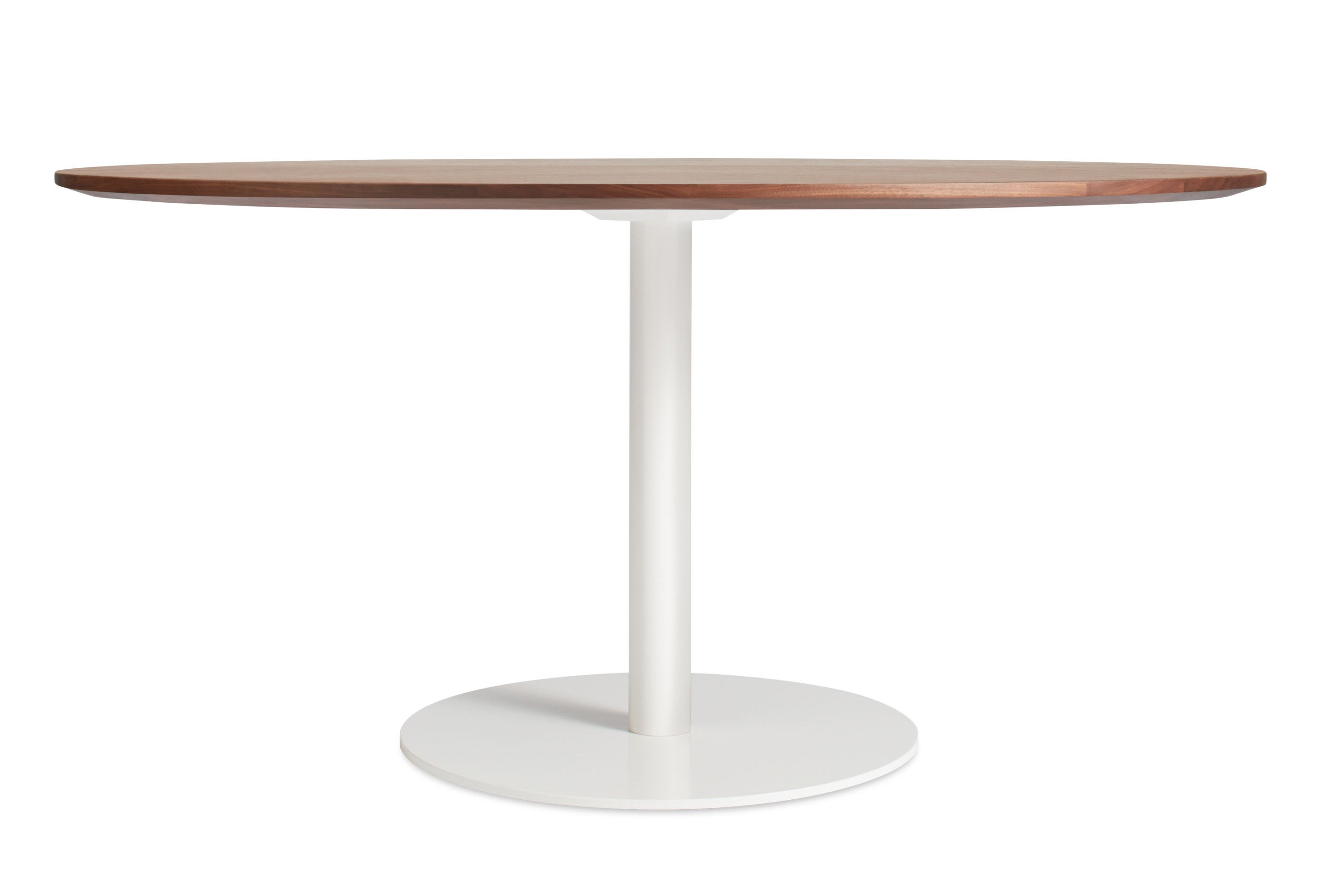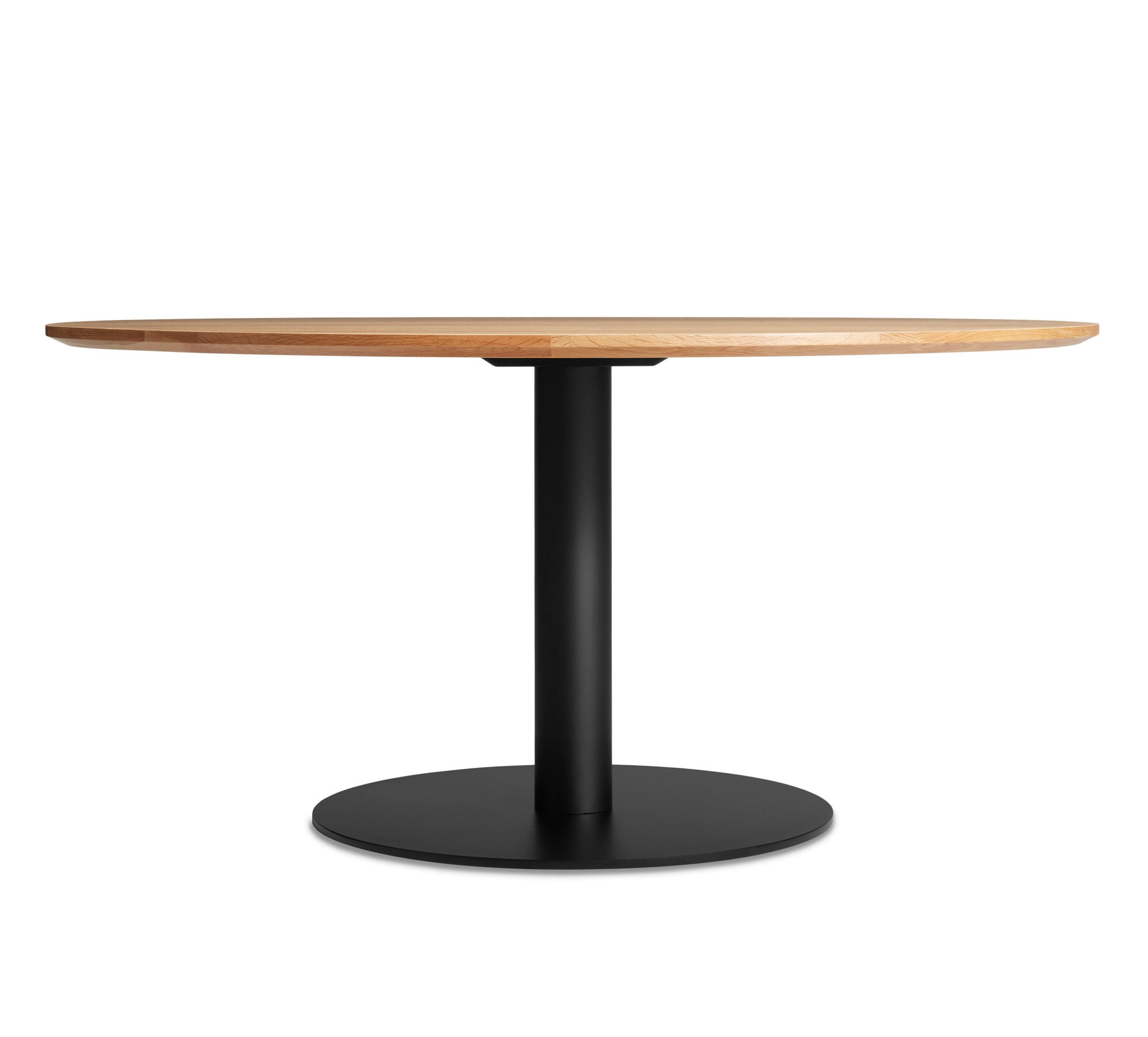 Easy does it. Breakfast, lunch, dinner or whatever. An uncomplicated pairing of a beefy steel pedestal and a warm walnut top.