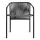 All-weather rope is woven round and round a light powder-coated steel frame to create a double-take of a graphic pattern and hammock seating at the dinner table. Best enjoyed with a side of sunshine and a Negroni.