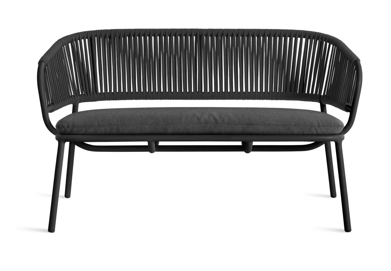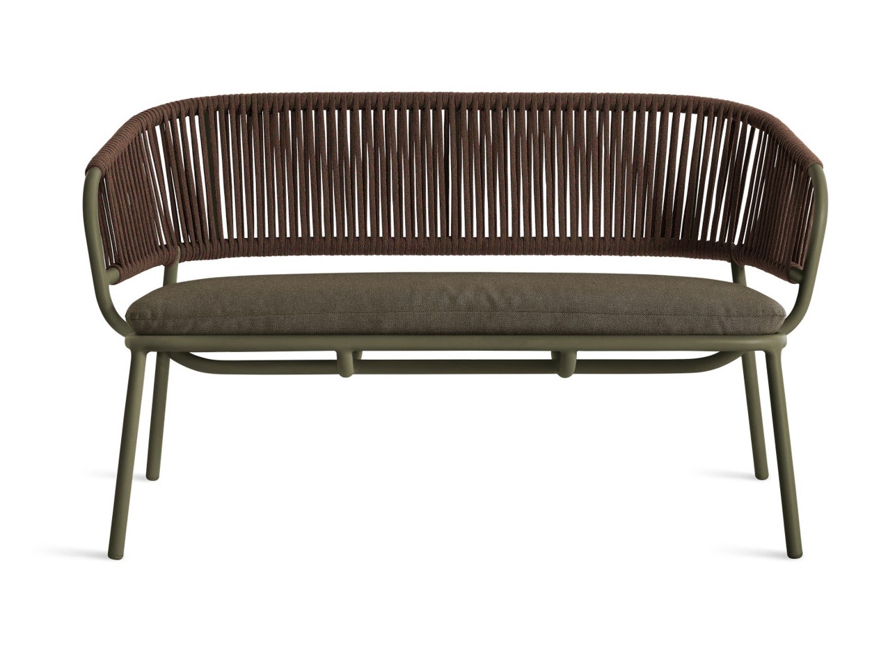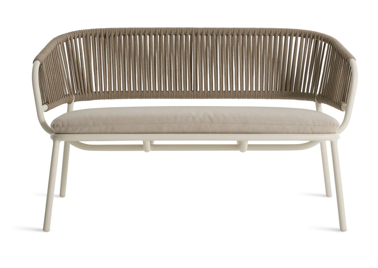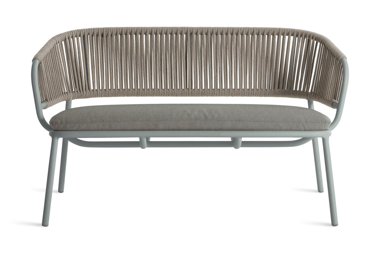 Even better with a buddy. Woven all-weather rope wraps a tubular aluminum frame to create a balance of texture, comfort and resilience. Sunbrella™ upholstered seat cushion is UV- and mildew-resistant. Proportioned for relaxation