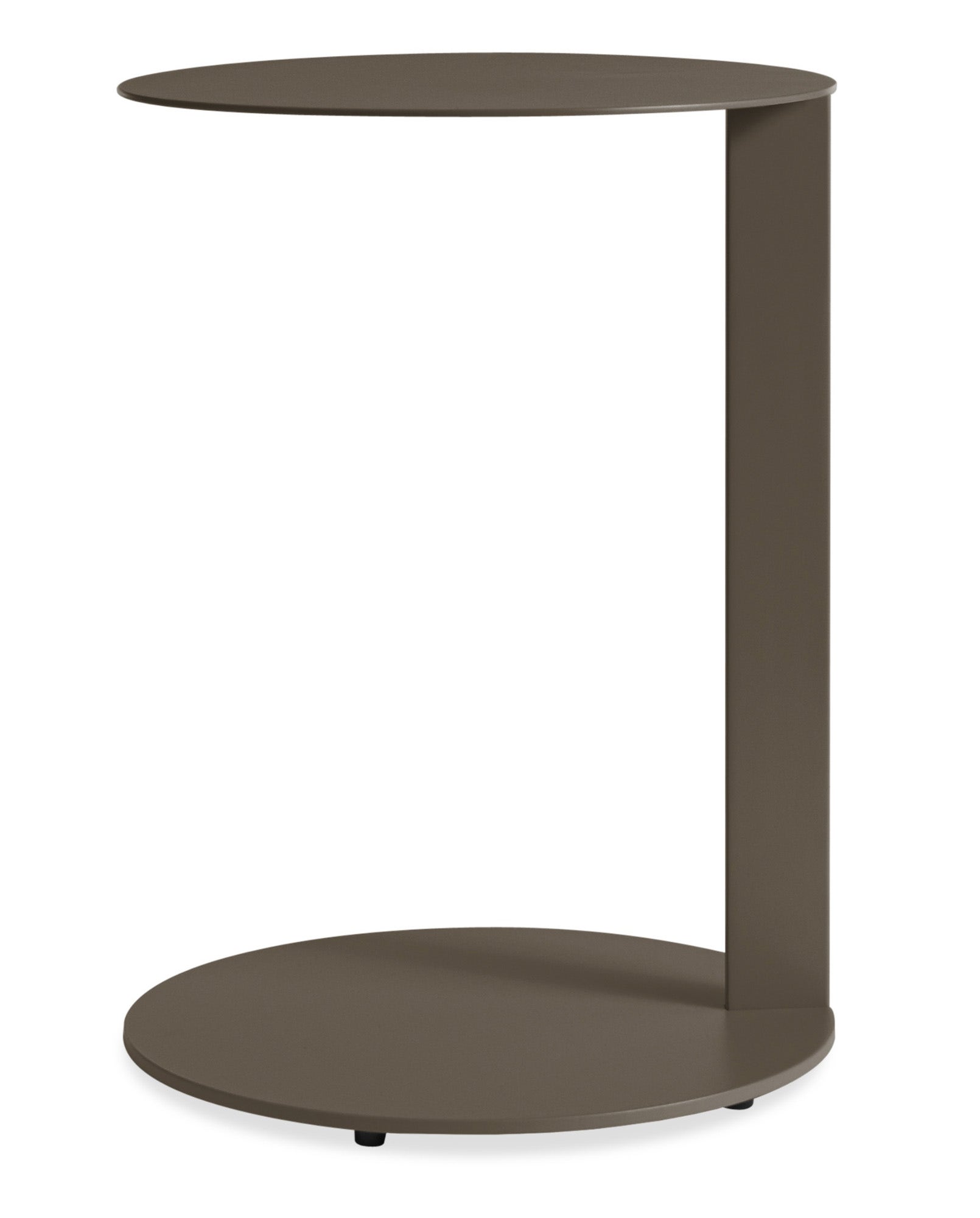 spiA striking slim ne of solid powder-coated steel supports a cantilevered round table top and base. Couple the well-tuned Note Side Table with sofas, lounges and beds to create a floating workable surface in a pinch.
