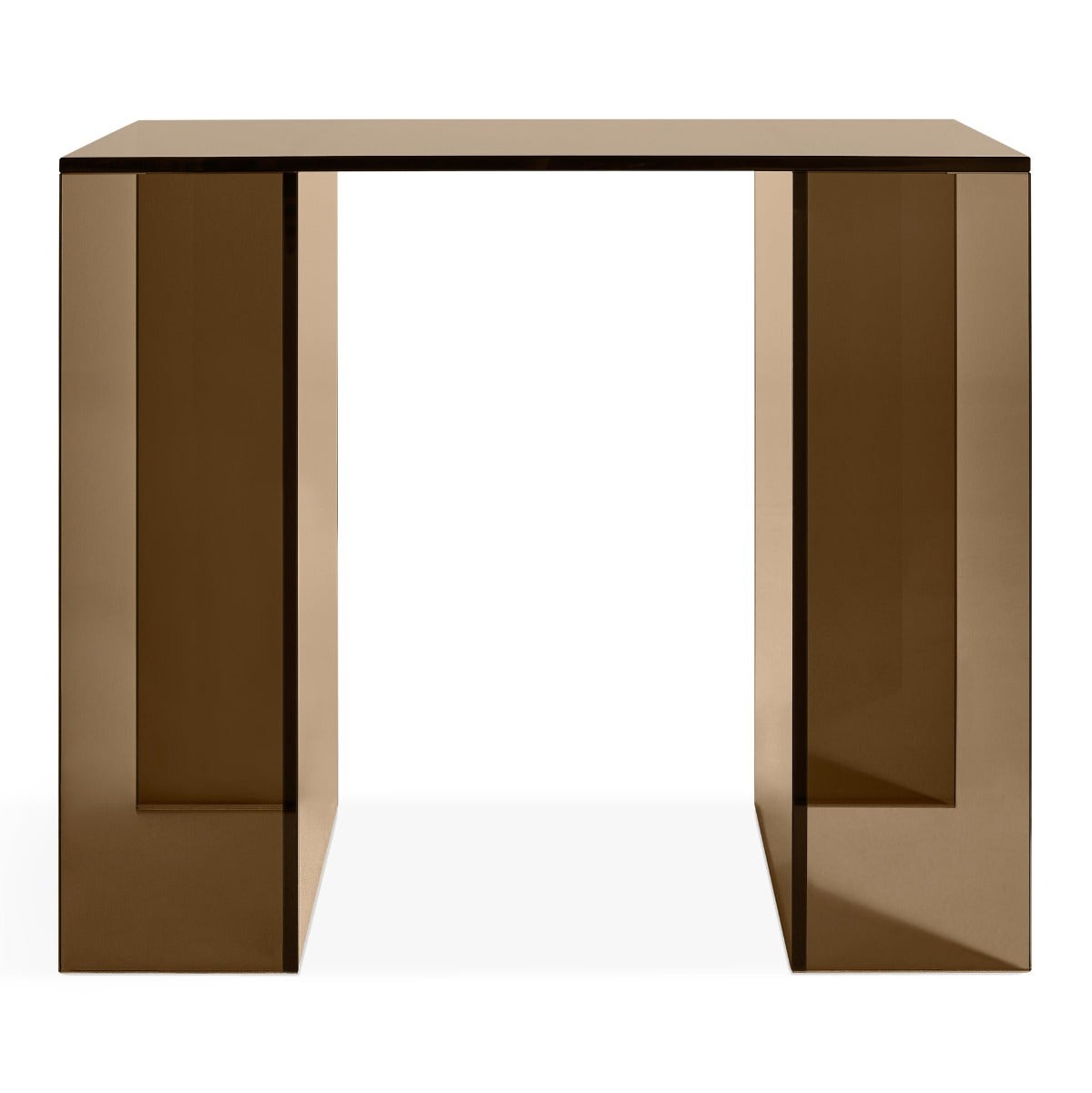 We set bronze tempered glass on bronze tempered glass to create a table with nothing to hide and a lot to say. Let it speak for itself, or use the vast swaths of surface and shelf-like apertures to accommodate your objects d’art and catalogue raisons.
