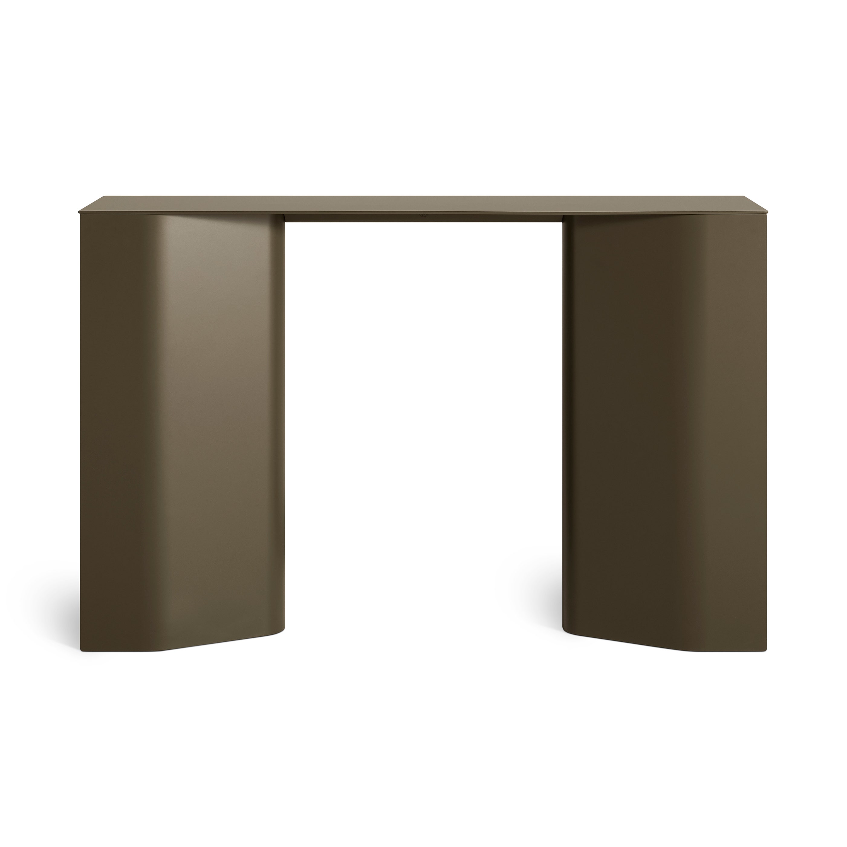Powder-coated aluminum is artfully shaped to form a sculptural console table that holds its own indoors and out.