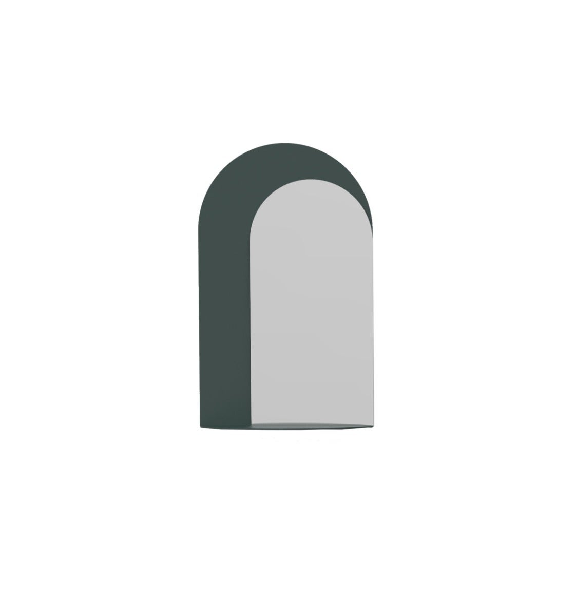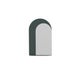 An arch shaped glass mirror with an arched frame made of wood veneer. The mirror sits on the floor and can be secured with a wall hook as a safety measure against tipping over. Wall hook not included.