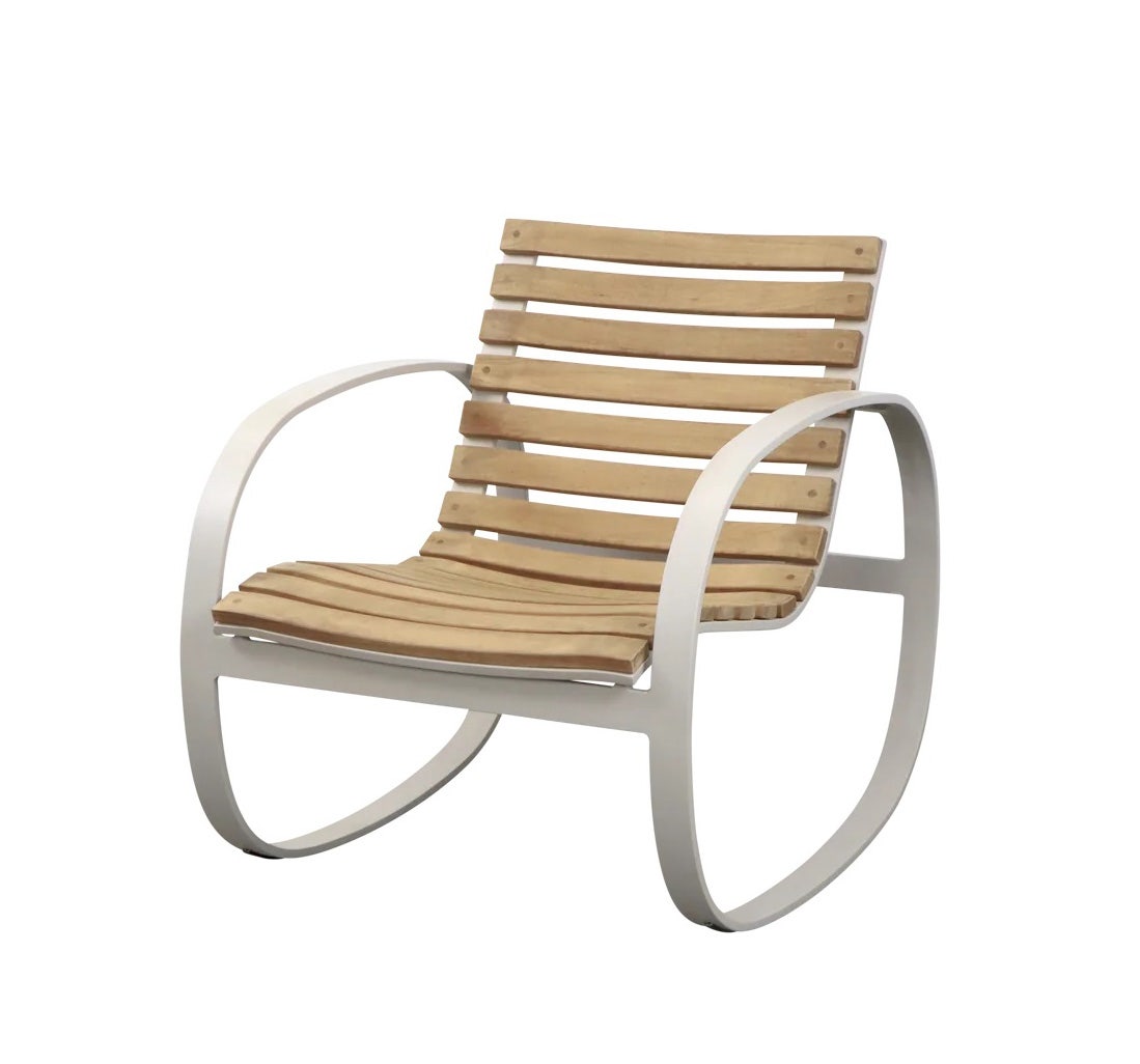 Parc rocking chair is a refined and exclusive chair of design furniture in teak designed by the Danish designduo Foersom & Hiort-Lorenzen MDD. The chair is "bodyfitted" so it follows the shape of the body and gives an extremely high comfort. The Parc series is suitable for both small as well as large outdoor spaces due to its different design options, from bench to rocking chair and dining chairs. Parc will fit any space due to its choice of natural material and its exclusive design. Parc is produced in certified teak and powdercoated aluminum which ensure a resistant surface.