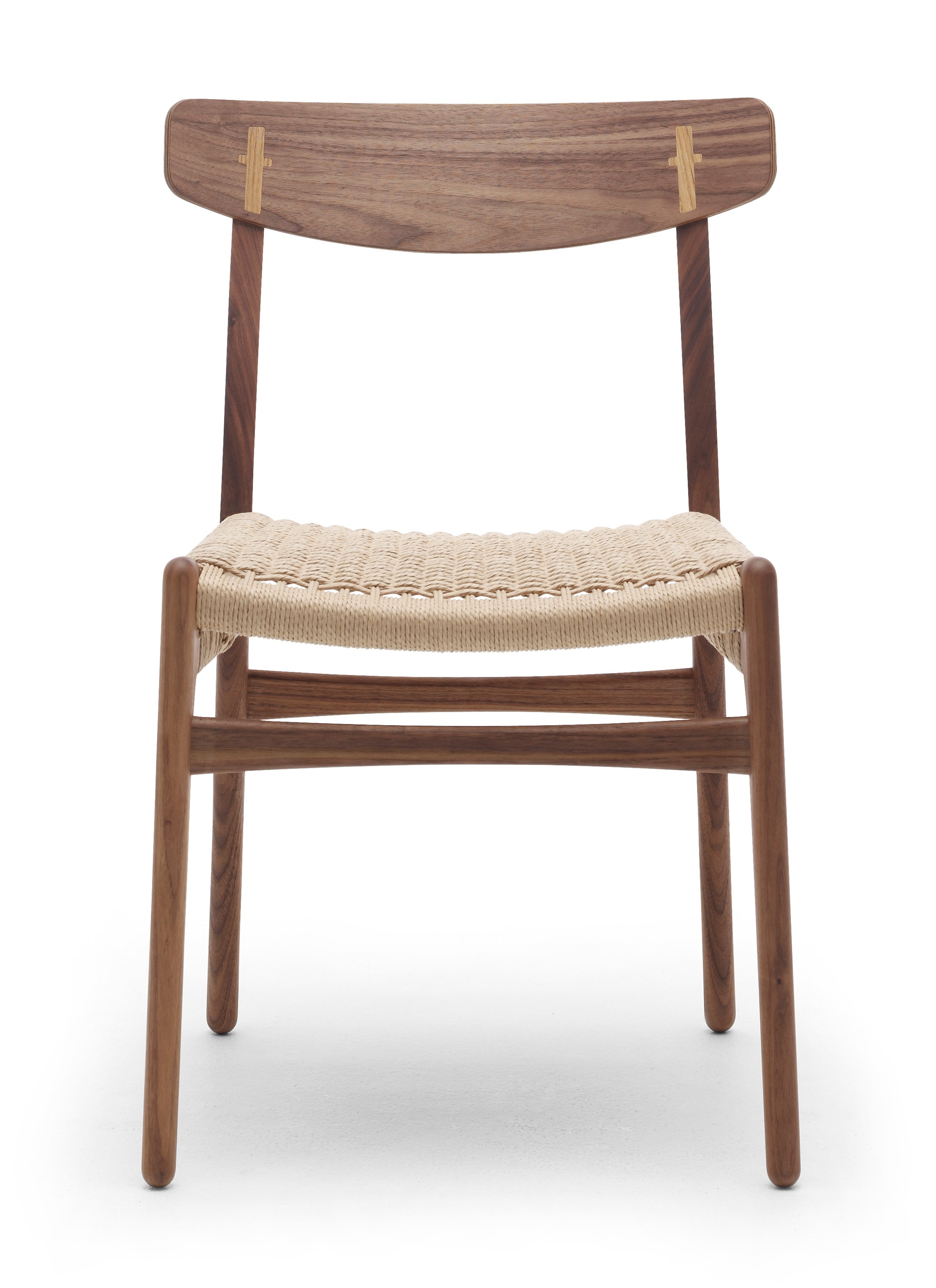 The CH23 dining chair is an early example of Hans J. Wegner's unique style and insightful craftsmanship, and contains many well-known Wegner details - for example, the elegantly shaped cruciform caps on the backrest and the special double-woven seat.