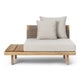 The Embrace Outdoor Lounge Sofa is a flexible, modular design featuring a solid FSC-certified untreated teak frame and soft upholstery. A hand-woven flat rope back and armrests support soft upholstery in a range of earthy colours. The sofa is fully customisable and can be freely combined from seven standard modules.
