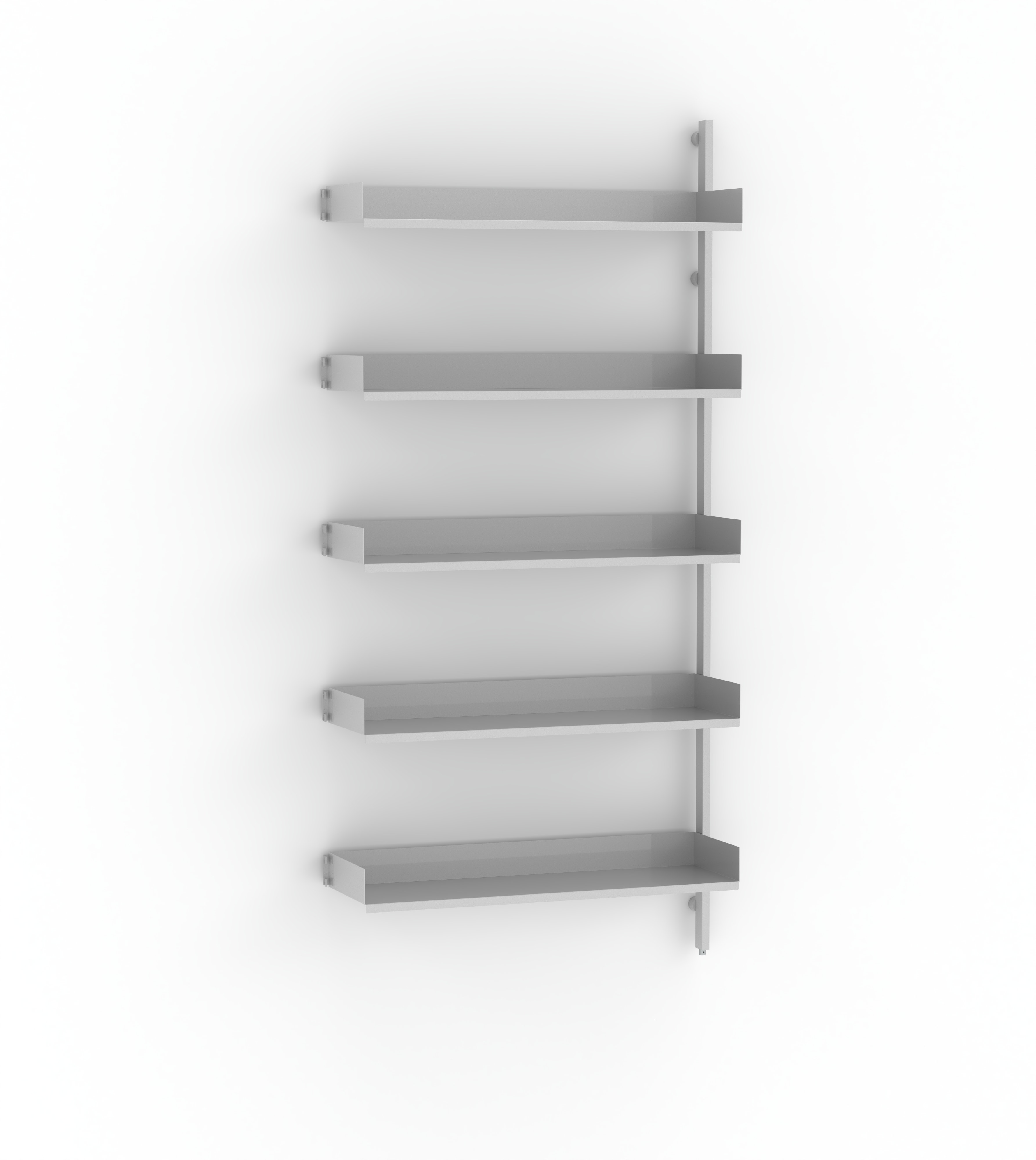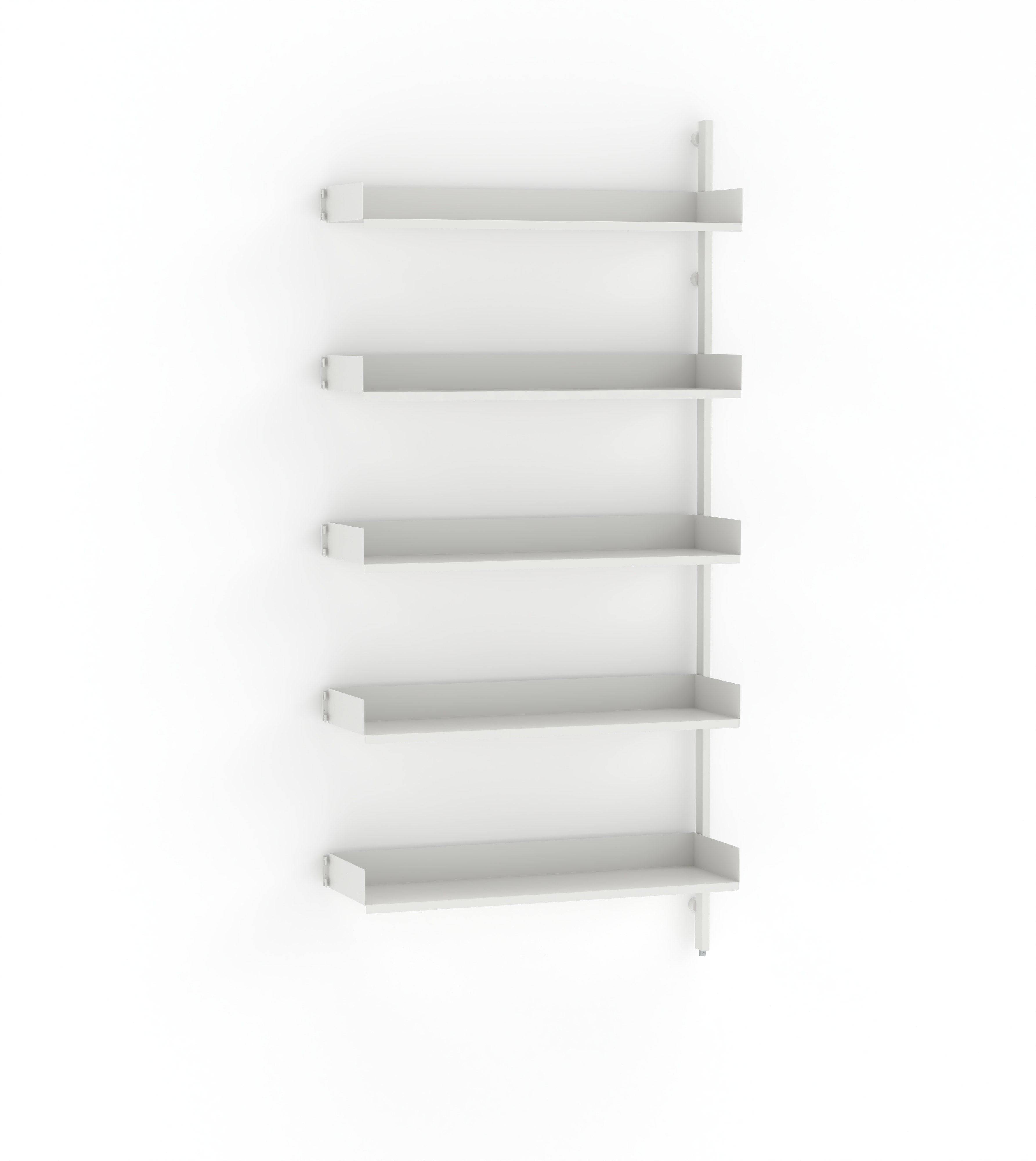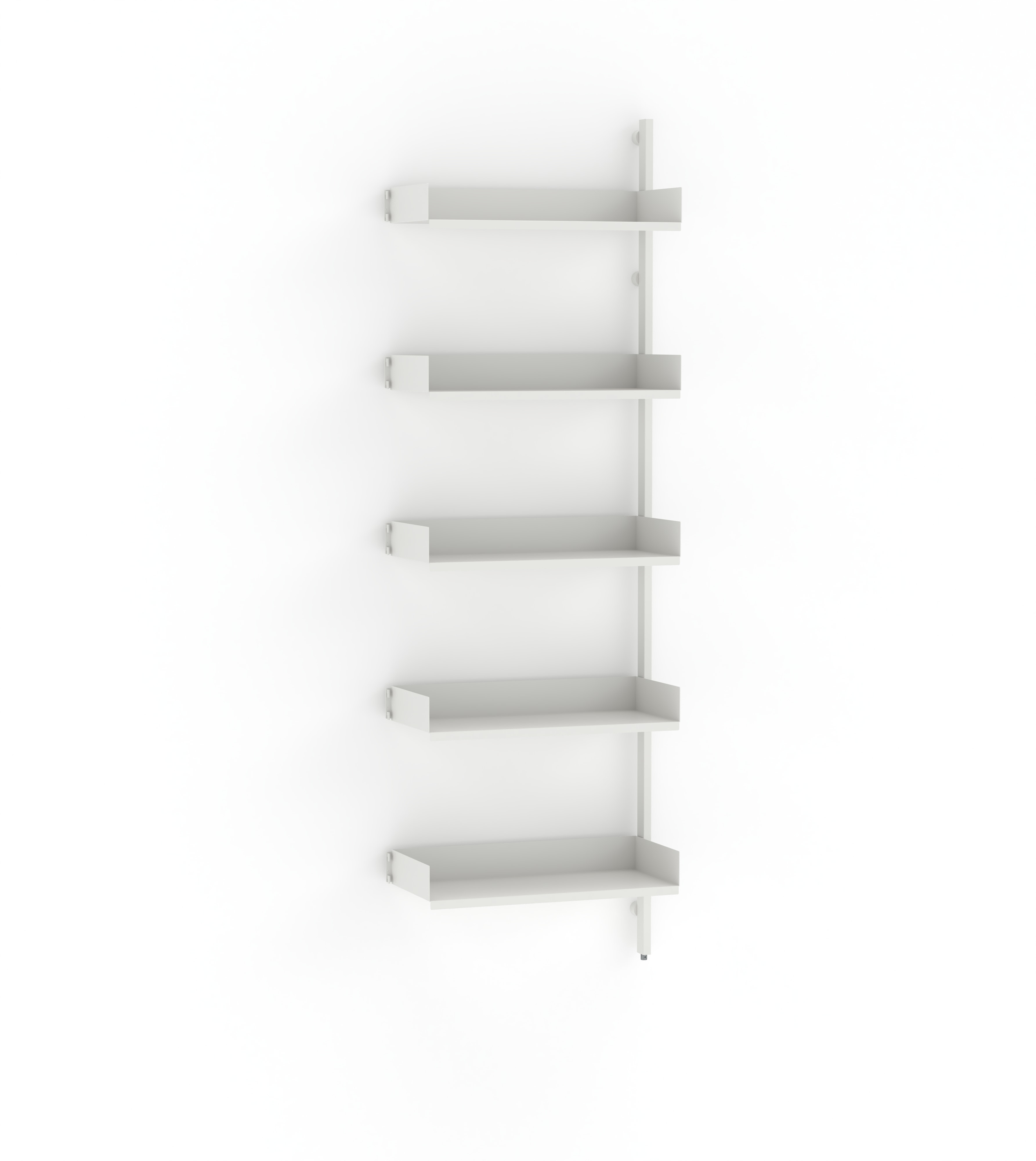 Slot, designed by Terence Woodgate, is an adjustable wall-mounted shelving system with hidden fittings and slots. Designed with simplicity at its core, Slot was created using the principles of reverse engineering; by positioning the vertical supports away from MORE INFO