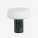 A pure cylindrical base, crafted from solid Italian finegrained Carrara marble or solid Spanish Nero Marquina Marble. It’s topped by a hand-blown opal glass shade which is acid-etched inside and out to provide a soft, diffused light. An integrated, state-ofthe- art dimmable LED is controlled by a touch button on the marble base. As marble is a natural material the hue and veining will vary from piece to piece.