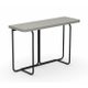 DEE-J is a console table boasting a wooden straight-edged top with a book-leaf mechanism that enables it to fold over to double its size; it also features rounded corners on the outer side and a tubular-metal structure.