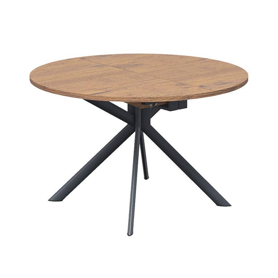 GIOVE extendable table with metal pedestal base with top in melamine. Fixed central metal base with four elliptical sloping legs and butterfly leaf opening with central leaf. The simple, bold lines of this table make it suitable for any living space.