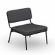 Sixty is a contemporary reinterpretation of an enduring classic. Your lounging spot will reverberate with new zeitgeist thanks to this generously padded lounge chair. The coloured metal base circumscribes the seat and rises up behind the backrest, forming a practical handle for moving it around.