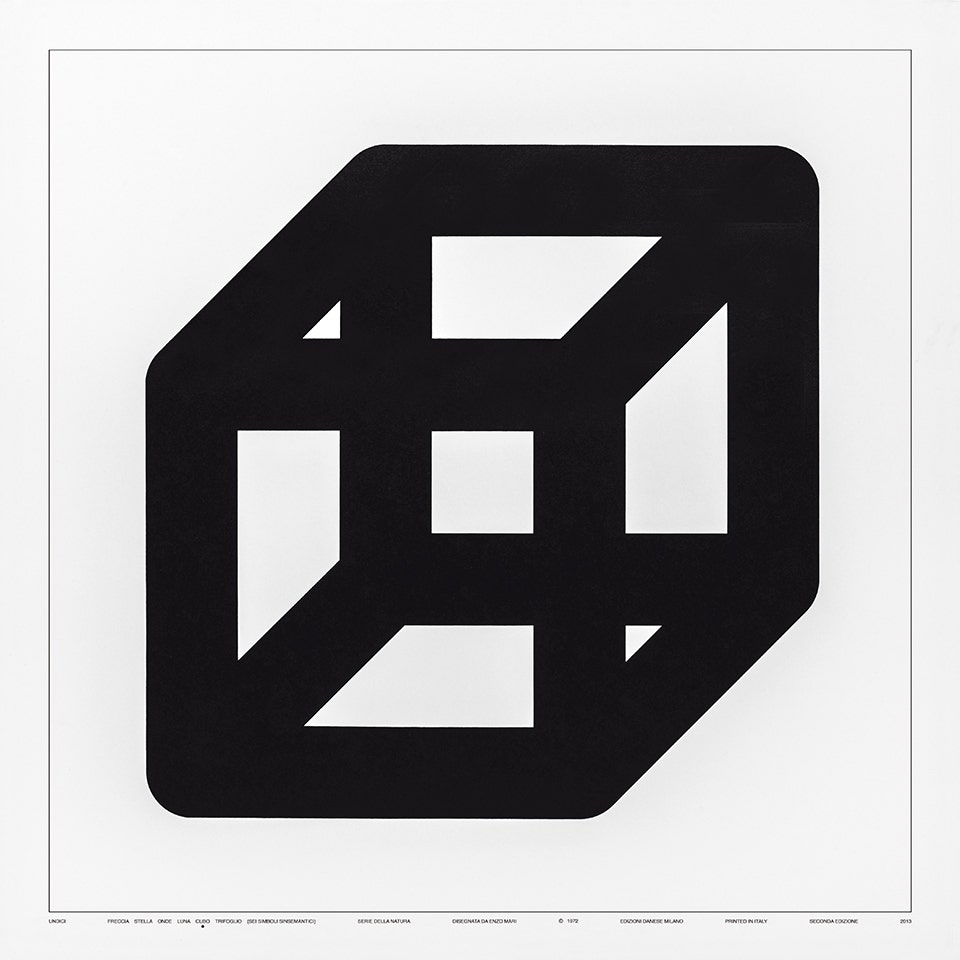 Simboli sinsemantici are monochromatic silkscreen prints of six symbols. The aim of the series was to bring art into the home by rendering it more accessible to a wider public. The fact that the symbols are printed and are therefore produced in an unlimited series cancels out the preconceived concept of one single original work of art.