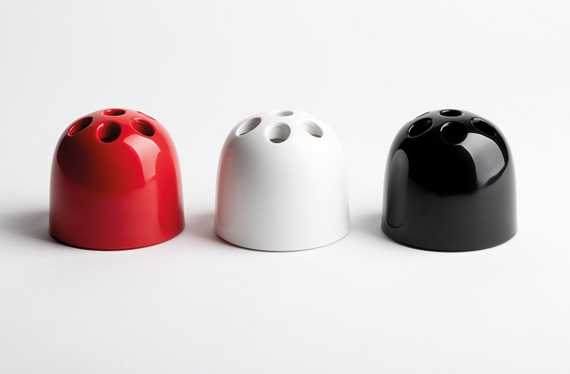 Designed for the Artemide collection of objects, it shares with Danese Milano production the same intelligence that combines form, materials and production technology in a simple and iconic object. It scales the shape of the Dedalo umbrella stand to accommodate pencils and colours while maintaining the values of the design. A simple object whose formal quality is timeless and adds accessible quality to everyday life through manufacturing intelligence.