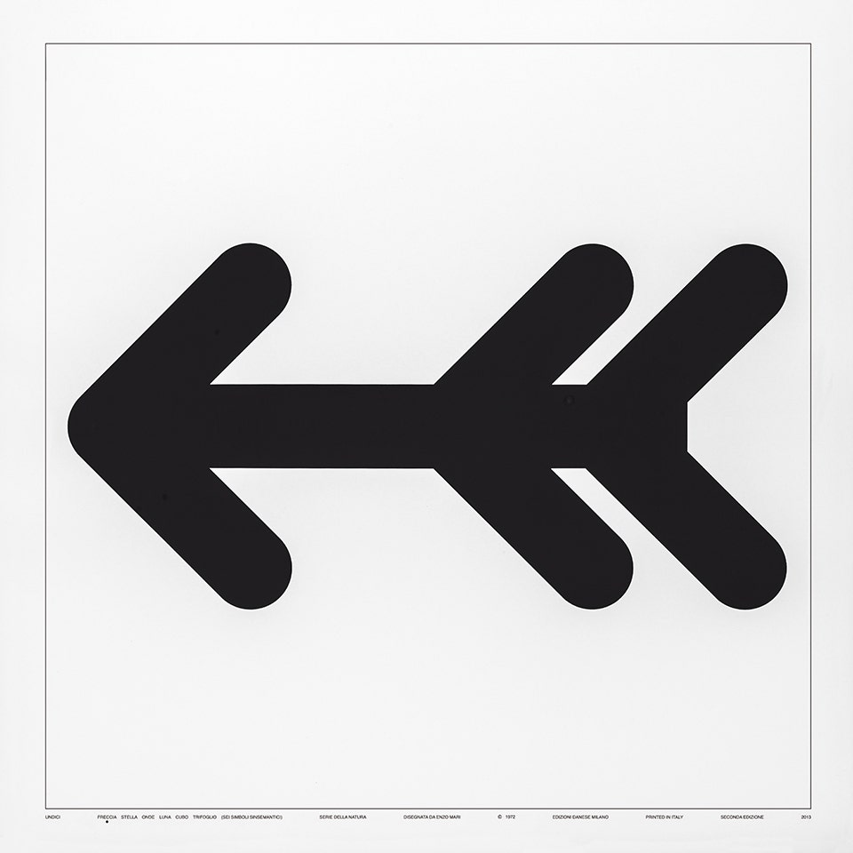 Simboli sinsemantici are monochromatic silkscreen prints of six symbols. The aim of the series was to bring art into the home by rendering it more accessible to a wider public. The fact that the symbols are printed and are therefore produced in an unlimited series cancels out the preconceived concept of one single original work of art.
