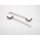 A salad spoon and fork made of polished stainless steel. They feature the same pure geometry, with an incision changing the function.