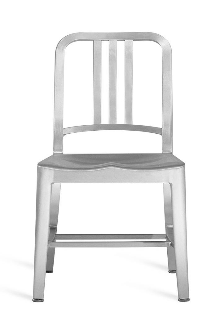Make chairs lightweight and make them strong, build them for a lifetime. That is Emeco’s mission. Aluminum is the obvious choice, engineered for practical purposes, designed by real people. Forming, welding, grinding, heat-treating, finishing, anodizing are just a few of the 77 steps it takes to build an Emeco chair. No one else makes chairs this way. No one can. It takes a human eye to know when the process is done right, and it takes human hands to get it that way. Their goal: Make recycling obsolete and keep making things that last. In 2006 Coca-Cola and Emeco collaborated to solve an environmental problem: Up-cycling consumer waste into a sustainable, timeless, classic chair. Made of 111 recycled PET bottles, the 111 Navy Chair is a story of innovation.