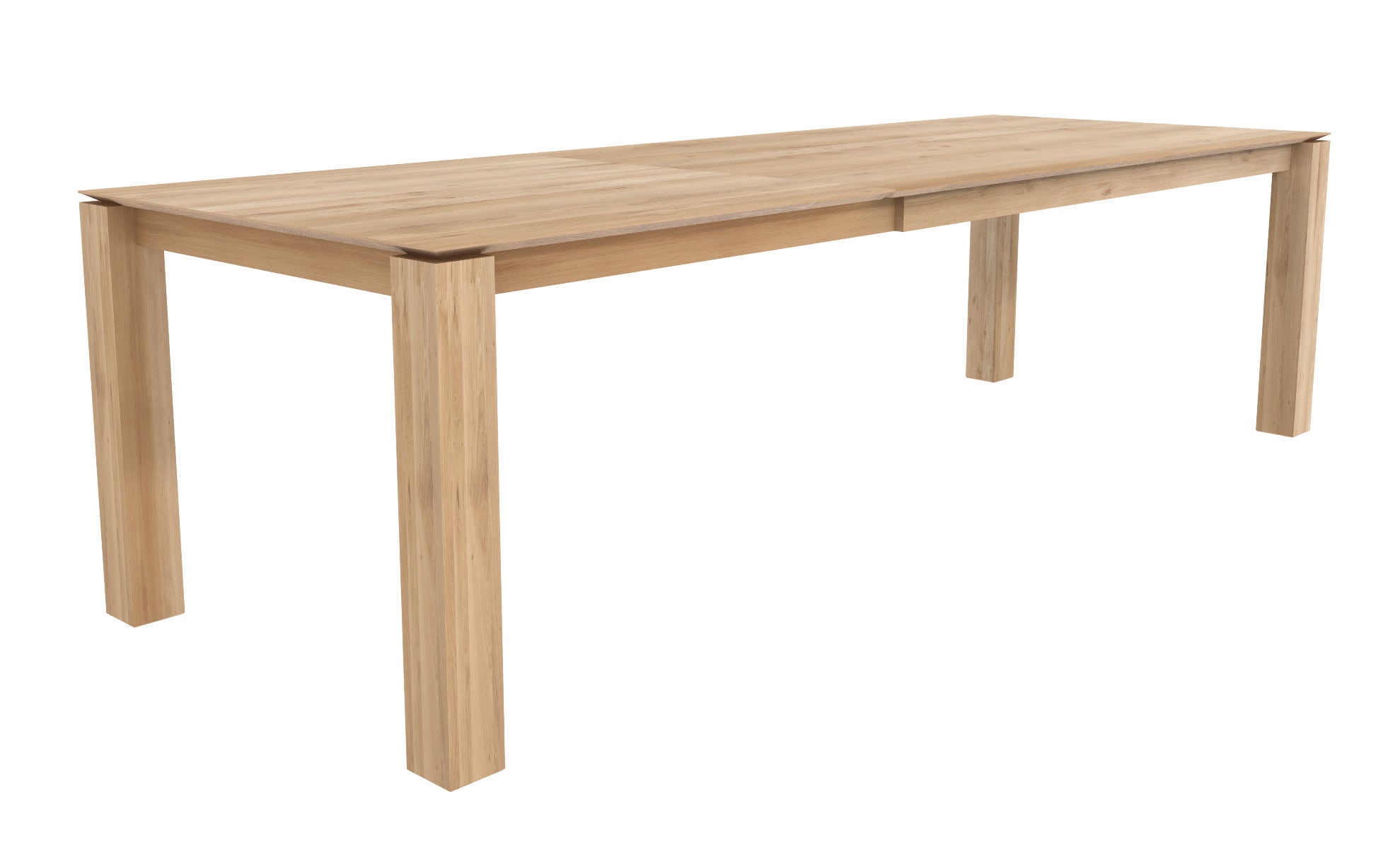 Slice is a dining table with a unique character, but we added a little extra. This table can easily be extended without interruption of the wood grain pattern.