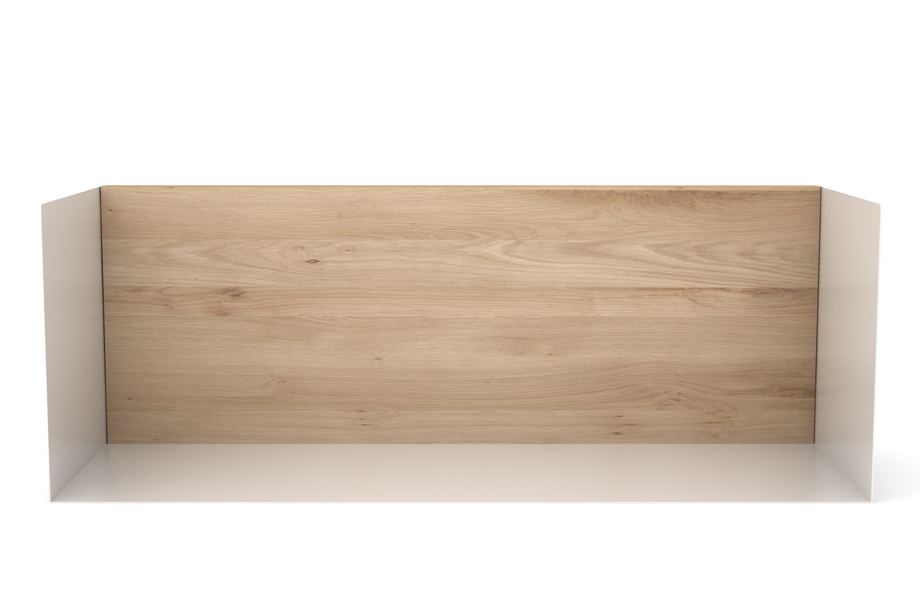 The silhouette of the U shelf goes along the wall like a thin sharp line. The back in solid oak allows an easy and secure fixing on the wall, while the mix with thin metal makes a high quality and durable product. The invisible fixing on the wall makes the shelf appear airy.