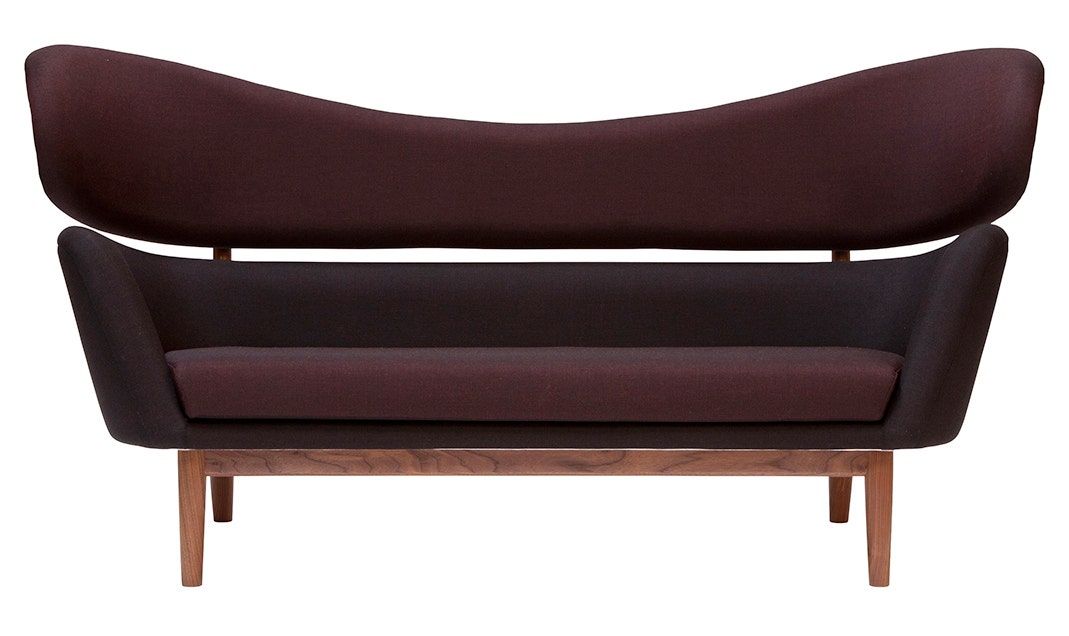 The sculptural forms are inspired by the modern free art, which interested Finn Juhl very much. The sofa has an upholstered body divided in two, resting upon an elegant and light construction of wood – a typical example of how Finn Juhl separated the elements in order to create a visual lightness.