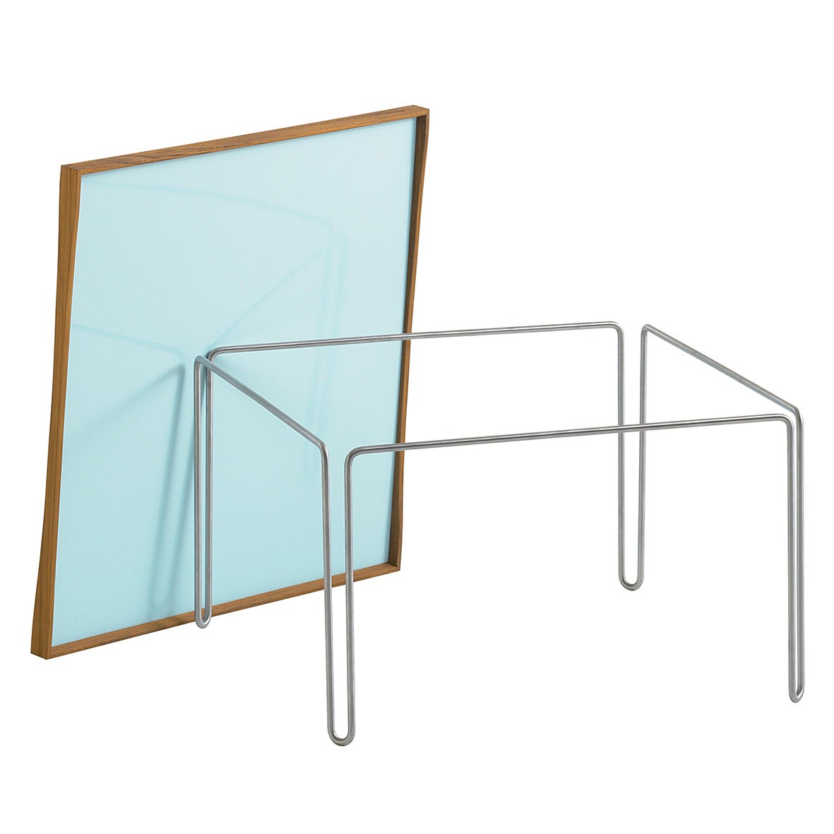 The Tray Table is in reality an elegant, slim brushed steel frame fitted with a tray. The table works well on its own as well as in a group setting. The trays are manufactured with thin edges in teak or walnut and have a base of veneer or glossy laminate. Additionally, the tray can be turned - all trays come with one white side and the other side is either black, light green or light blue.