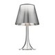 Created by innovative design master Philippe Starck, the Miss K table lamp brings a delightful duality to its work. When unlit, its transparent PC (polycarbonate) outer diffuser—which is internally finished with a high vacuum aluminization process—rests with a sleek metallic tint. When the lamp is lit, the transparency of the diffuser is evident and it appears as if you’re looking at an x-ray of a lamp. The Miss K features a fully transparent, injection-molded PMMA (Polymethyl methacrylate, UL-94 HB) frame and an opal injection-molded PC (polycarbonate; UL-94 V0) internal diffuser. There is a dimmer for 0-100% luminosity and a transparent, polarized cord. The Miss K provides diffused light.