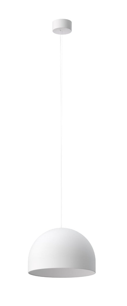 Suspension lamp composed of a half-sphere in an acylindrical finish that evenly projects light downwards. The matte white colour complements a simple geometry that adapts to any style. My Dome offers a classic suspension piece for downlight illumination reimagined through the poetics of Michael Anastassiades. Light is diffused evenly downwards, making the lamp ideal for illuminating a dining table.
