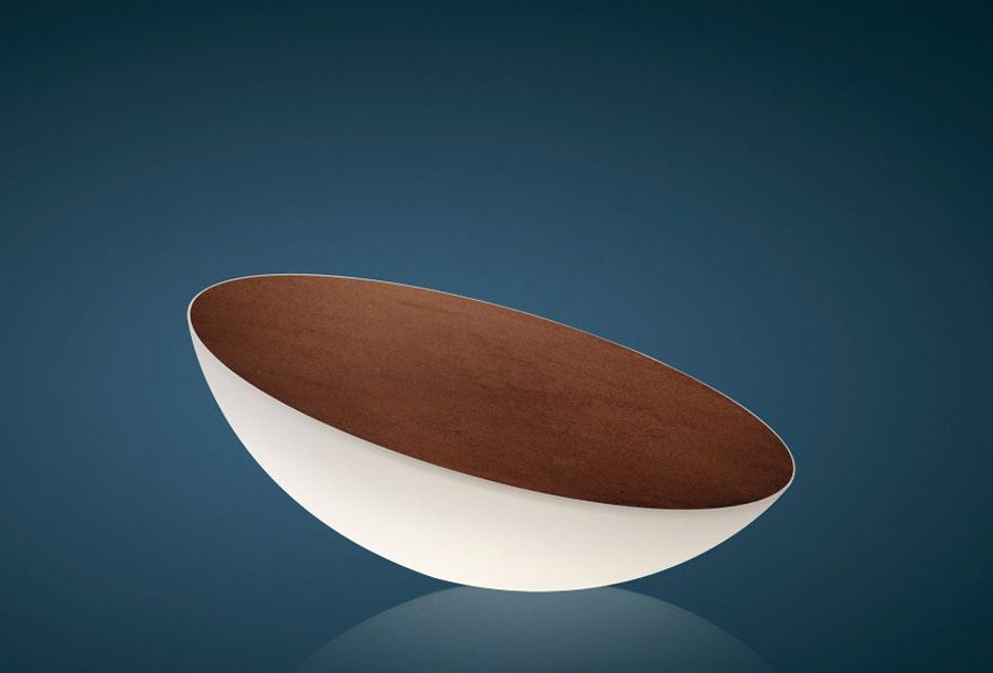 Solar is a new type of object, a contemporary hearth around which to gather and chat, at home or outside. The surface finishes are different: glossy white or dark wood for the indoor version, with a characteristic rusty and textured effect for the outdoor version.. The hemispherical body, made of polyethylene, is stable even when it is tilted by 15°. The angling determines the quantity of light diffused, allowing multiple effects and atmospheres to be created.