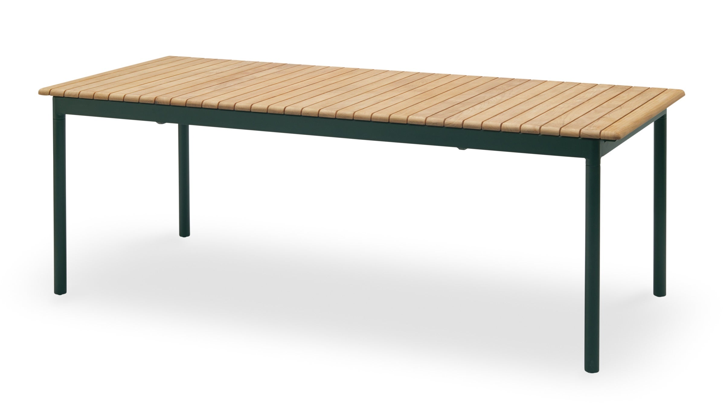 Pelagus Table is created for sociability and comfort. The teak tabletop has rounded edges where it meets the powder-coated aluminum. Comfortably seating 6 or 8 people, it can be extended for up to 4 more, with the addition of one or two extension plates (sold separately).