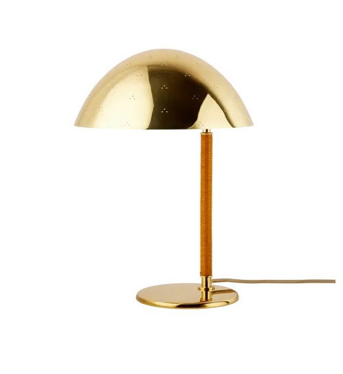 One of the great industrial designers and metal craftsmen of the 20th century, Tynell came into the world at precisely the right time to become one of the pioneers of modern lighting; as the electric light spread across the world, so too did Tynell’s design visions. The 9209 has a distinctively shaped shade in spun brass that has led to it being referred to as the ‘Kypärä’ – the Finnish word for ‘helmet’. Held in place by a curved brass arm, the individually molded shade is decorated with triangular patterns of perforation – a Tynell decorative signature – which requires a specialist punch tool and the utmost precision to achieve by hand. As well as guiding the light downward, thanks to the holes punched in the surface, the shade also allows pinpricks of light through, creating a soft, textured glow and a starlight-like sparkle.
