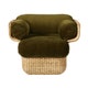 The name ‘Basket’ honors the classic hand-weaving technique used in rattan basketry. The collection comprises a three-seater sofa, a two-seater sofa, and a lounge chair, all of which share the same construction. Replacing the inner fiberglass shell that Colombo initially utilized, the core of each piece is now formed from a more environmentally responsible steel skeleton, which provides strength and stability to the unique form. This is covered with a hand-woven rattan skin, made from interlaced strips and oval stakes, a technique that de- mands a tremendous degree of skill and craftsmanship to create.