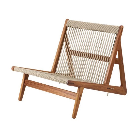 With its low-slung wooden frame and nautically evocative rope seat and backrest, Mathias Steen Rasmussen’s breakthrough MR01 Initial Lounge Chair has begged to be taken outside since its creation. Where the frame of the indoor edition is made from oak or walnut, the MR01 Initial Outdoor Lounge Chair is crafted from FSC®-certified iroko. This wood has proved itself ideally suited to Rasmussen’s design, maintaining its strong silhouette through the transition outside, and helping to emphasize the MR01 Initial Chair’s sculptural quality.As with the indoor edition, the MR01 Initial Outdoor Lounge Chair’s frame is constructed without the use of screws. To endure life outdoors, the MR01’s Initial Outdoor Lounge Chair’s has custom-made high-performance polyester rope. This material is waterproof, making it perfect for the poolside; UV-resistant, so it will not fade over long days in the sunshine, which means it will not degrade. An anti-deformation core prevents the rope stretching over time.
