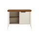 - Right side has adjustable walnut shelf behind single door, hinged at right