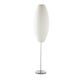 Part of the Nelson Bubble Lamp series, the Nelson Cigar Lotus Floor Lamp has an elongated sphere shape. Clean parallel lines in its understructure further accentuate this shape. Affixed to a steel lamp stand, with or without walnut cover, it illuminates any room with a soft, warm glow. George Nelson designed the series in 1952. He was inspired by a set of silk-covered Swedish hanging lamps.