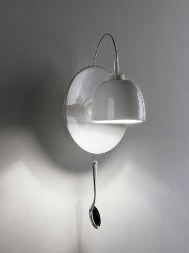 Light au Lait is functional and quirky, and fits nicely, but not exclusively, into kitchens and cafes. The teacup is attached to a saucer and, thanks to a ball joint, can be rotated 180° and tilted 30°. The switch is a teaspoon, which is pulled to turn the light on and off. Teacup and saucer are made of stoneware.