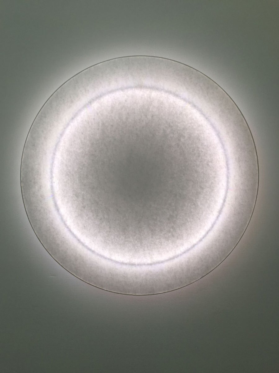 MOODMOON White is a bright alternative to the coloured MOODMOON, emitting a pure white light with high colour rendering. The poetic light effect of the luminaire by Sebastian Hepting is created by the unique structure of the Japanese paper, which is penetrated by bright, warm white LEDs as a rear projection. The shape of MOODMOON White is reduced and restrained so that the extraordinary paper unfolds its effect more effectively and allows reflection on the essentials. MOODMOON White can be mounted as a wall or ceiling luminaire. As it is only 5 cm high, it is particularly suitable for rooms with low ceilings to flood them with light.