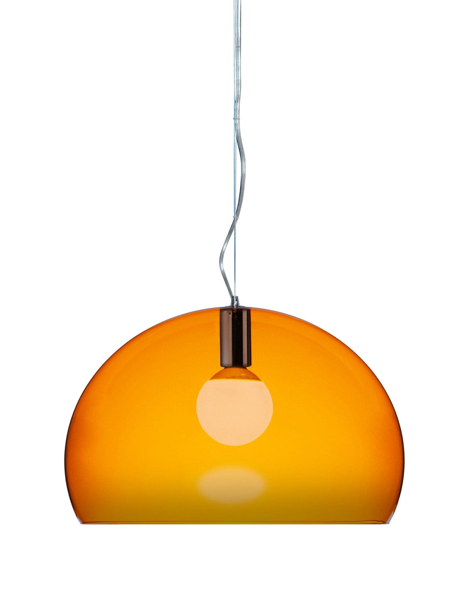 An essential lamp which is characterized by the “subtle interpretations of the theme". Made in transparent methacrylate in all the colours of the rainbow, the cover is not perfectly hemispherical but the cut-off is underneath the height of the diameter to collect the most light. What’s more, the special transparency of the material and the sheen of the colours bring to mind a soap bubble, iridescent with reflections of light. They are packaged singly, but also come in compositions that enhance their delicate chromatic variations.