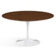 The Knoll Saarinen - Round Dining Table is part of Eero Saarinen’s Pedestal Collection. He resolved the ""ugly, confusing, unrestful world"" underneath tables and chairs. The Round Dining Table is 42” and seats 4-5 people. It has a single, tulip-shaped base, and the tabletops have bevelled edges, a defining accomplishment of modern design.