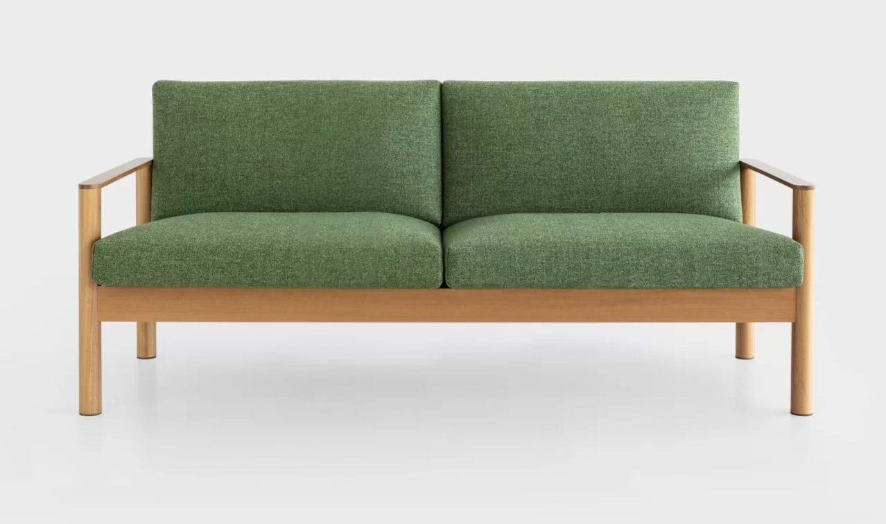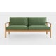 2-seater sofa with transparently painted solid iroko wood frame. Felt feet. Removable polyurethane foam seat and back cover in differentiated density with laminated polyester fiber, fire retardant, covered with breathable and waterproof protective fabric and UV-resistant outer fabric. Waterproof protective covers available.